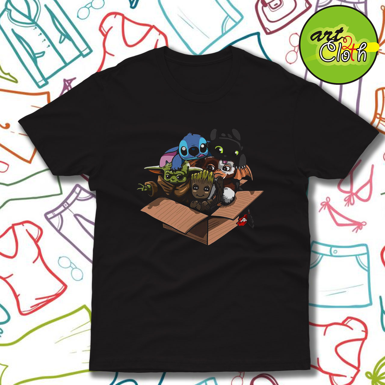 Baby Yoda Baby Stitch Baby Night Fury And Baby Groot In The Box T-Shirt – Custom Unisex Tee | Art2cloth.com