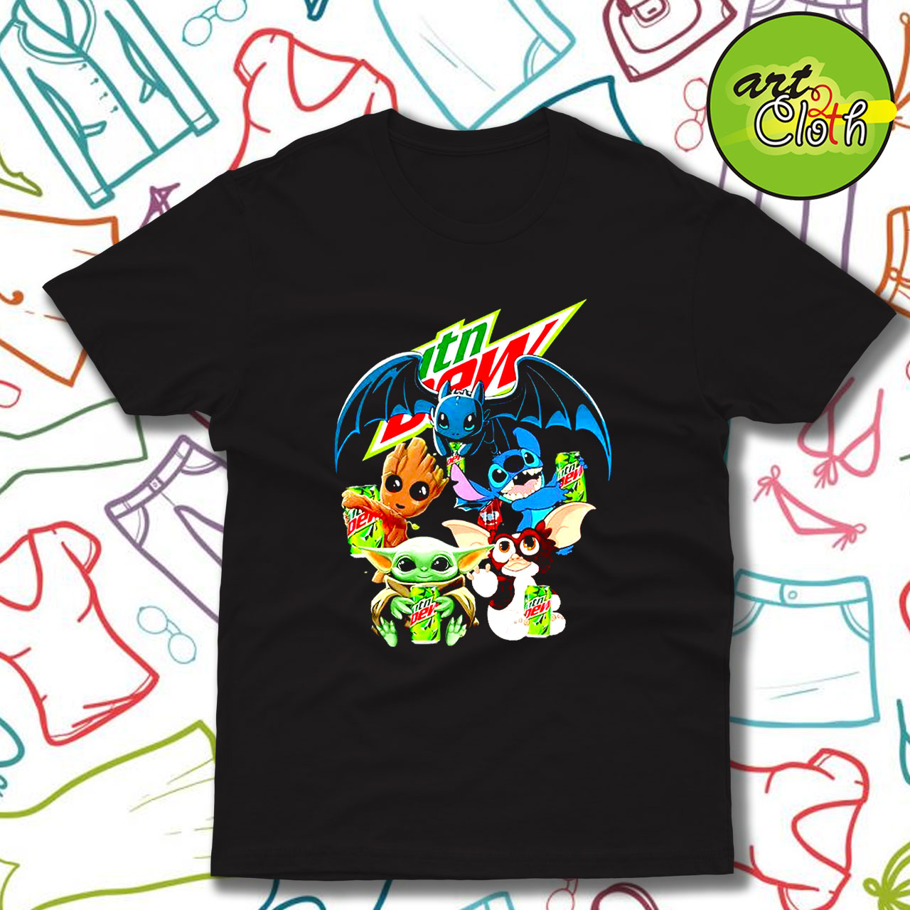 Baby Yoda Groot Stitch Toothless hugging Mtn Dew T-Shirt – Custom Unisex Tee | Art2cloth.com