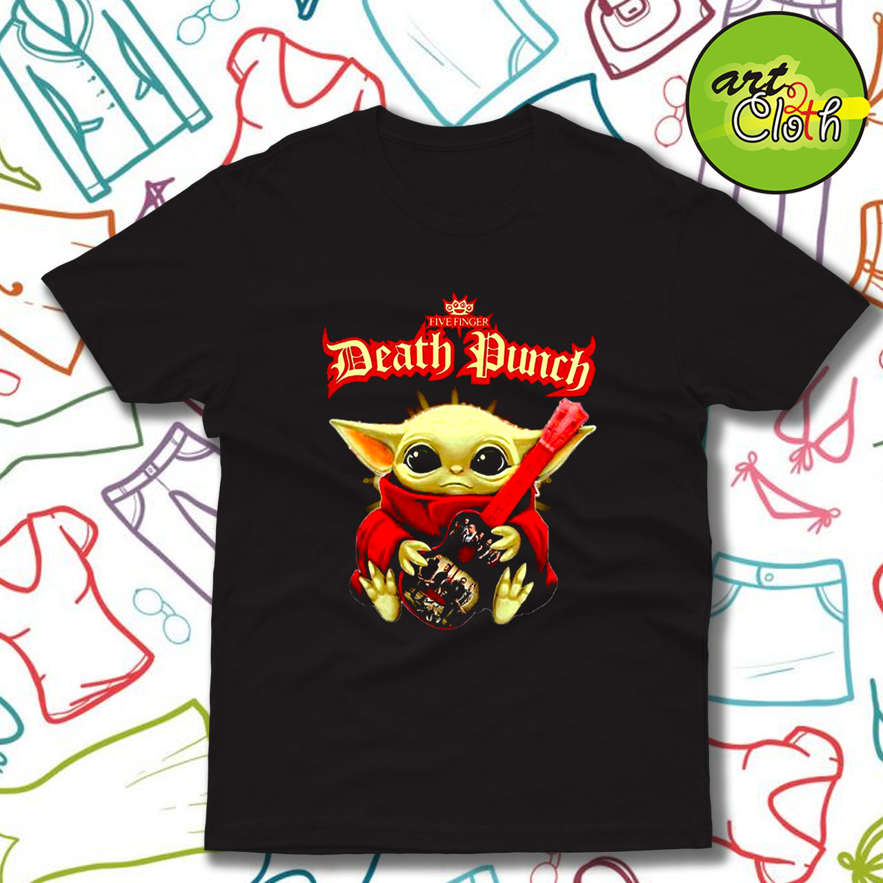 Baby Yoda hug guitar Five Finger Death Punch T-Shirt – Custom Unisex Tee | Art2cloth.com