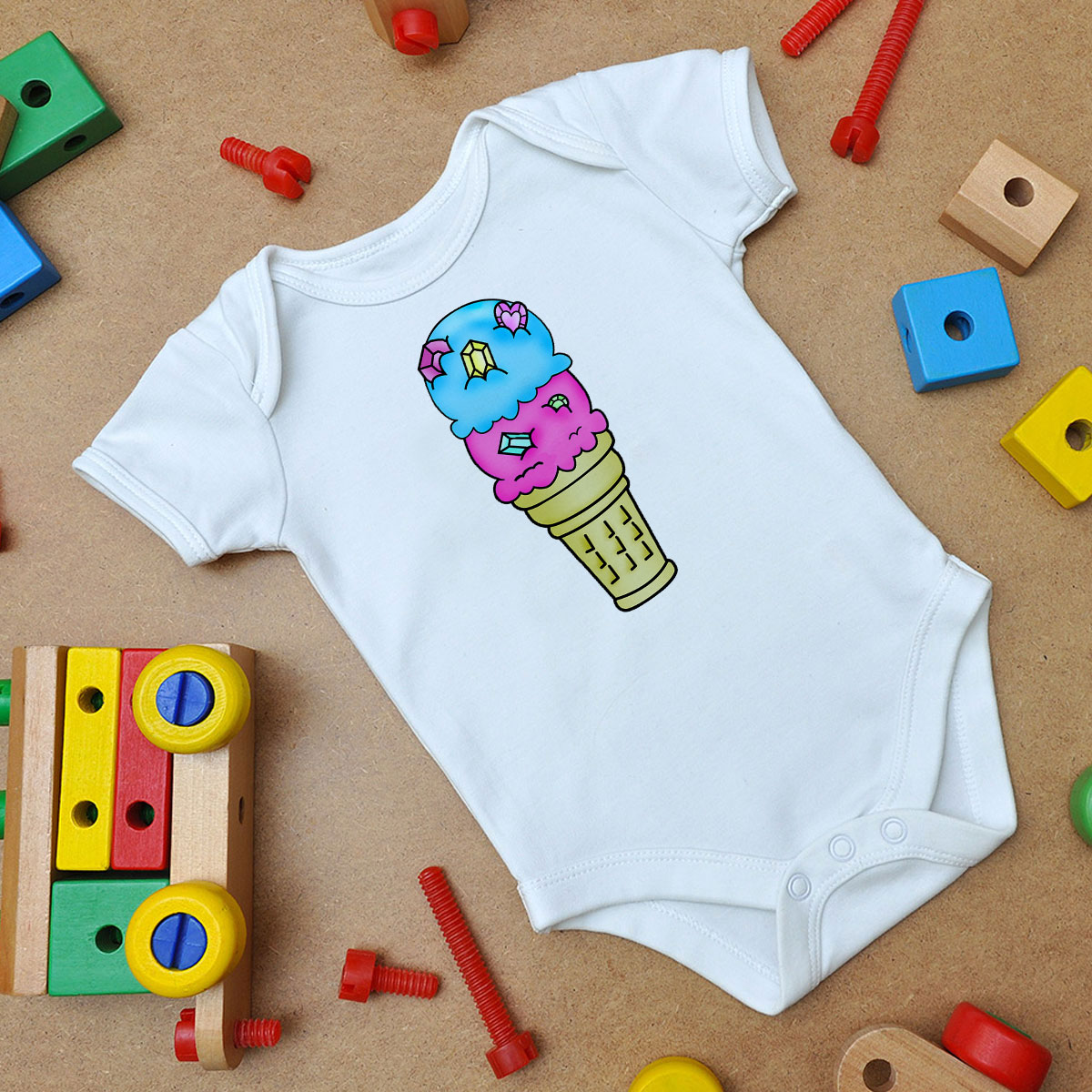 Bejeweled Ice Cream Cone Baby Onesie Custom for Baby Boy or Girl’s – Art2cloth.com