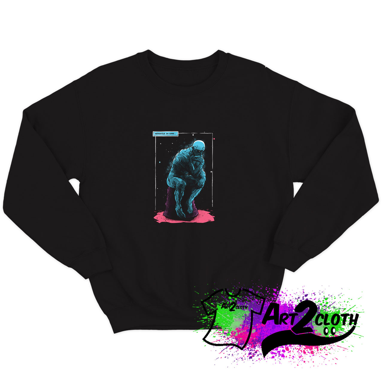 Welcome to Art2cloth.com. You’ve now found the staple Sweatshirt of your wardrobe. It’s made of thicker, heavier cotton, but it’s still soft and comfy. And the double stitching on the neckline and sleeves add more durability to what is sure to be a favorite!. Blue Thinker Sweatshirt is everything you’ve dreamed of and more. It feels soft and lightweight, with the right amount of stretch.