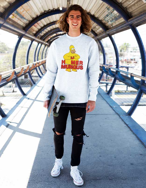 Welcome to Art2cloth.com. You’ve now found the staple Sweatshirt of your wardrobe. It’s made of thicker, heavier cotton, but it’s still soft and comfy. And the double stitching on the neckline and sleeves add more durability to what is sure to be a favorite! Homer Mungus The Simpsons Sweatshirt everything you’ve dreamed of and more. It feels soft and lightweight, with the right amount of stretch.