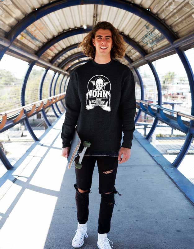 Welcome to Art2cloth.com. You’ve now found the staple Sweatshirt of your wardrobe. It’s made of thicker, heavier cotton, but it’s still soft and comfy. And the double stitching on the neckline and sleeves add more durability to what is sure to be a favorite! John Goblikon is My Homeboy Sweatshirt everything you’ve dreamed of and more. It feels soft and lightweight, with the right amount of stretch.