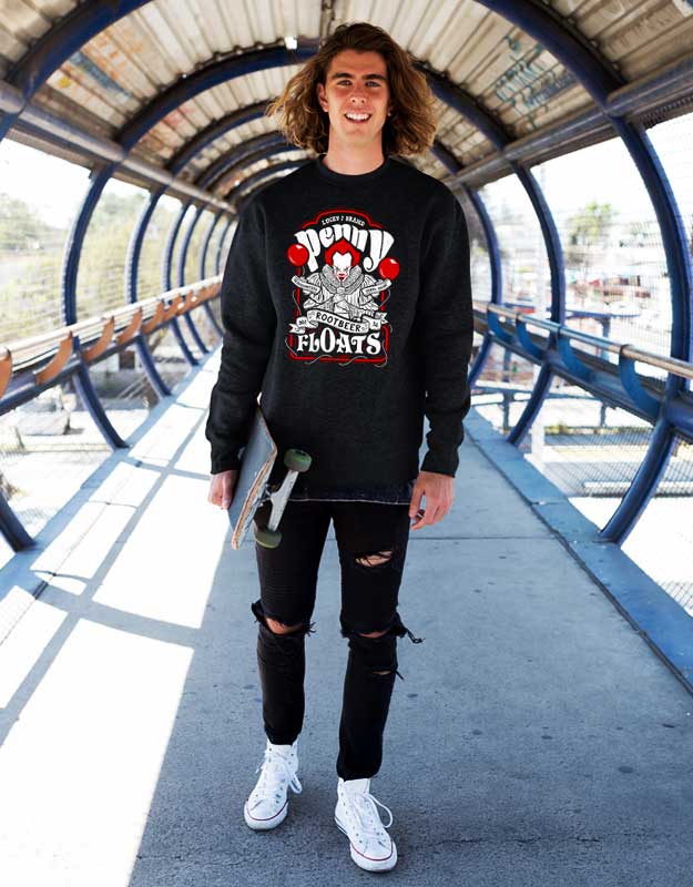 Welcome to Art2cloth.com. You’ve now found the staple Sweatshirt of your wardrobe. It’s made of thicker, heavier cotton, but it’s still soft and comfy. And the double stitching on the neckline and sleeves add more durability to what is sure to be a favorite! Pennywise Rootbeer Floats Sweatshirt everything you’ve dreamed of and more. It feels soft and lightweight, with the right amount of stretch.
