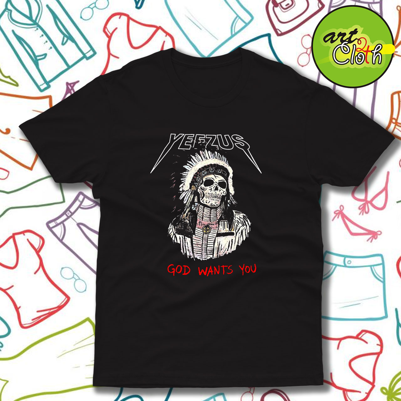 Red Indian Skeleton Yeezus Tour T-Shirt – Custom Unisex Tee | Art2cloth.com