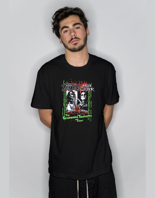 Welcome to Art2cloth – Cheap Custom Clothings Store. You’ve now found the staple tee shirt of your wardrobe. It’s made of a thicker, heavier cotton, but it’s still soft and comfy. And the double stitching on the neckline and sleeves add more durability to what is sure to be a favorite!. Rob Zombie x Alice Cooper Gruesome Twosome T-Shirt everything you’ve dreamed of and more. It feels soft and lightweight, with the right amount of stretch. It’s comfortable and flattering for both men and women.