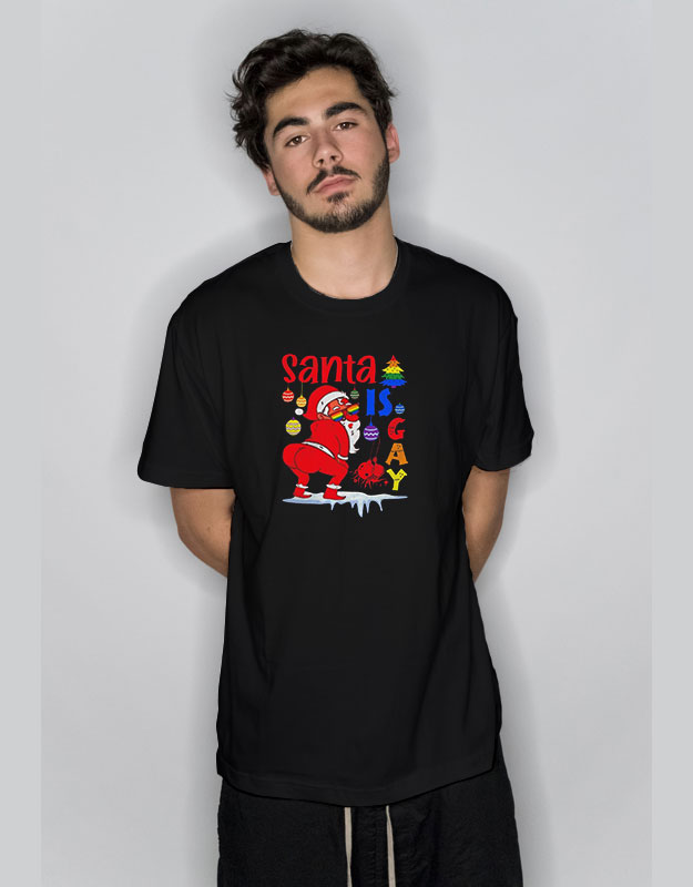 Welcome to Art2cloth – Cheap Custom Clothings Store. You’ve now found the staple tee shirt of your wardrobe. It’s made of a thicker, heavier cotton, but it’s still soft and comfy. And the double stitching on the neckline and sleeves add more durability to what is sure to be a favorite!. Santa Gay Pride Christmas Parody T-Shirt everything you’ve dreamed of and more. It feels soft and lightweight, with the right amount of stretch. It’s comfortable and flattering for both men and women.
