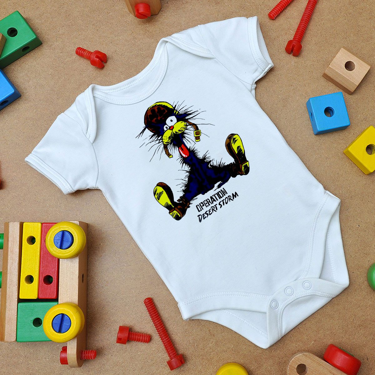 The Cat Operation Desert Storm Cartoon Baby Onesie Description :