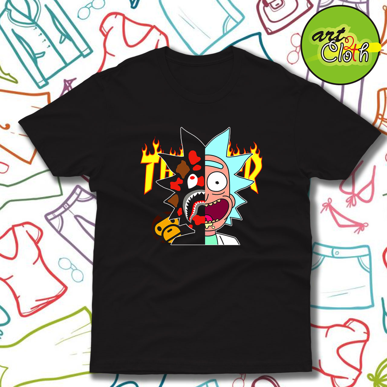 Thrasher Bape Rick Morty T-Shirt – Custom Unisex Tee | Art2cloth.com