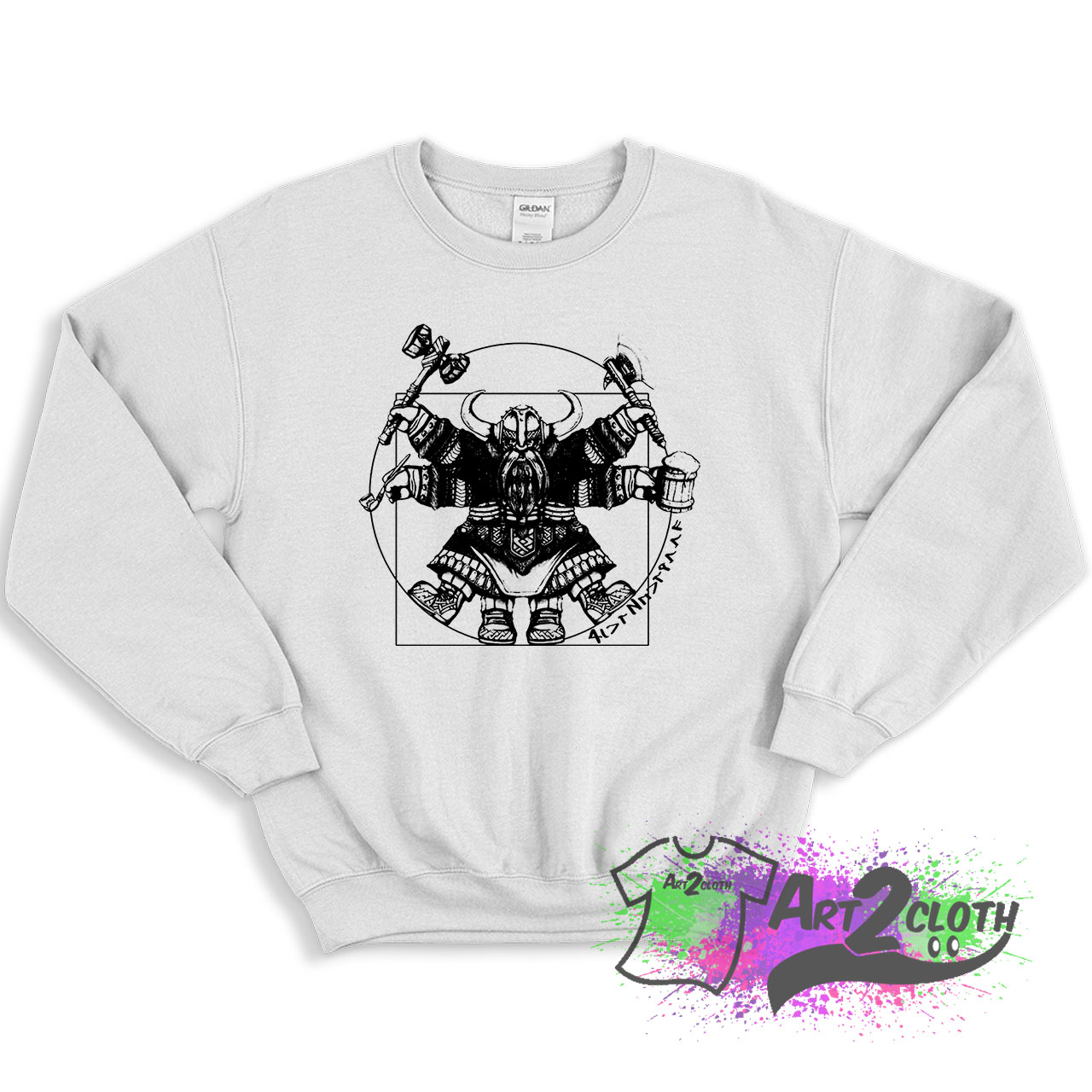 Welcome to Art2cloth.com. You’ve now found the staple Sweatshirt of your wardrobe. It’s made of thicker, heavier cotton, but it’s still soft and comfy. And the double stitching on the neckline and sleeves add more durability to what is sure to be a favorite!. Vitruvian Dwarf White Sweatshirt is everything you’ve dreamed of and more. It feels soft and lightweight, with the right amount of stretch.