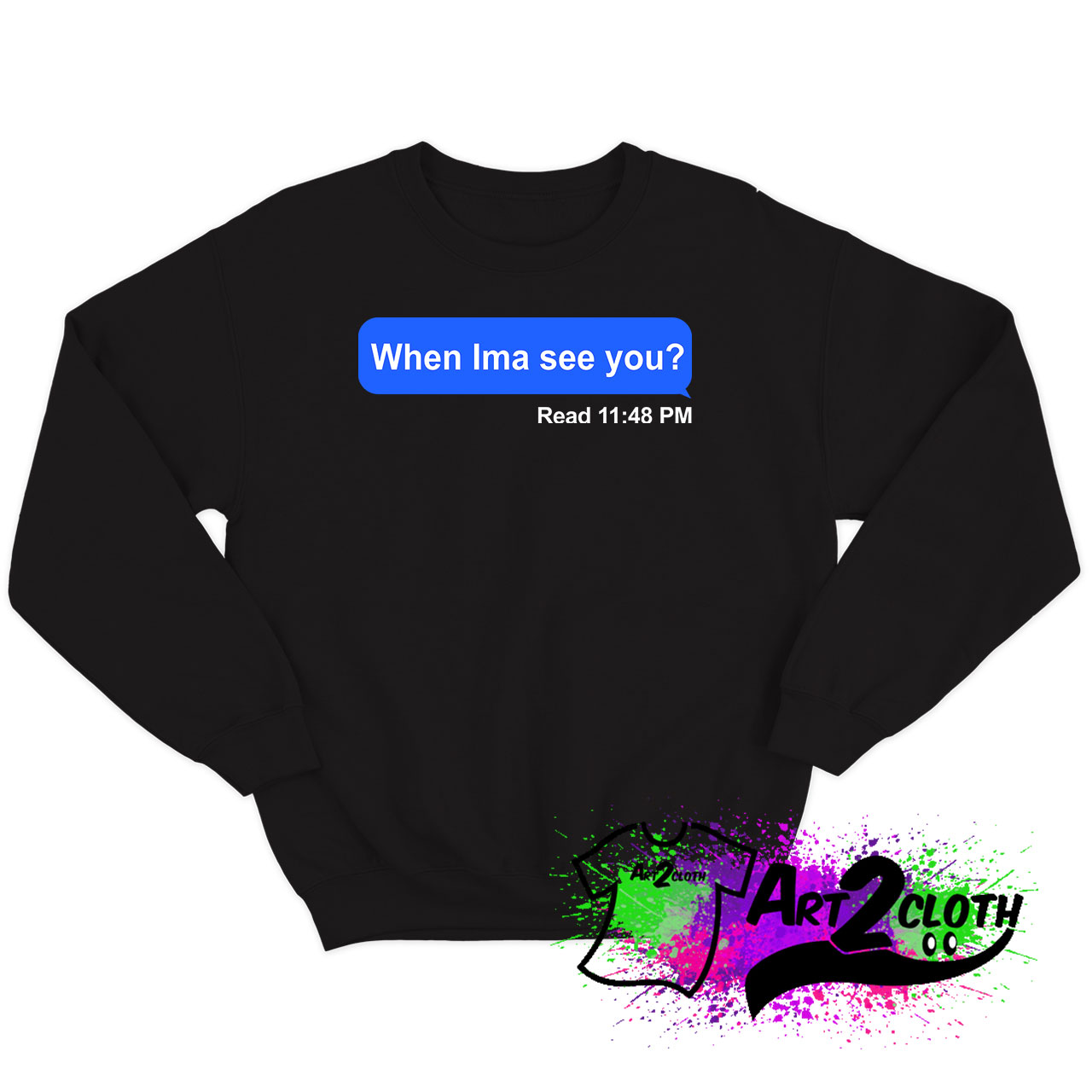 Welcome to Art2cloth.com. You’ve now found the staple Sweatshirt of your wardrobe. It’s made of thicker, heavier cotton, but it’s still soft and comfy. And the double stitching on the neckline and sleeves add more durability to what is sure to be a favorite!. When Ima See You Sweatshirt is everything you’ve dreamed of and more. It feels soft and lightweight, with the right amount of stretch.
